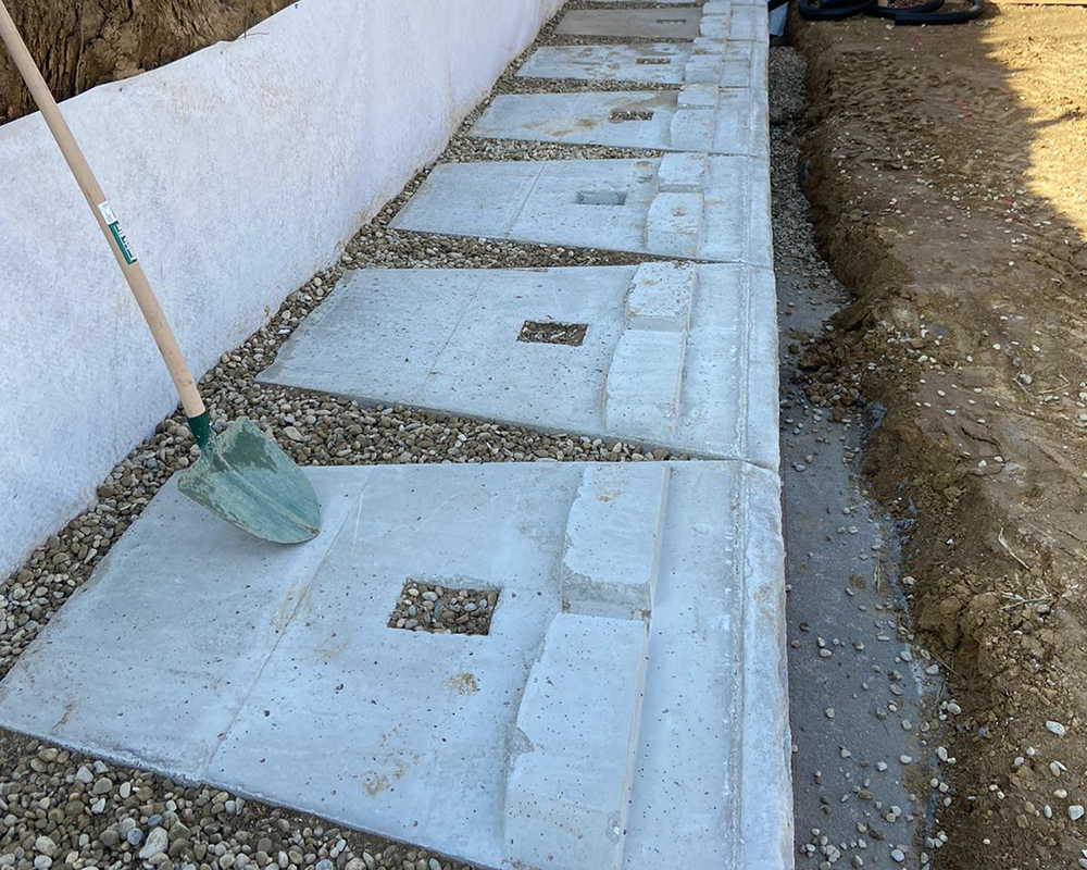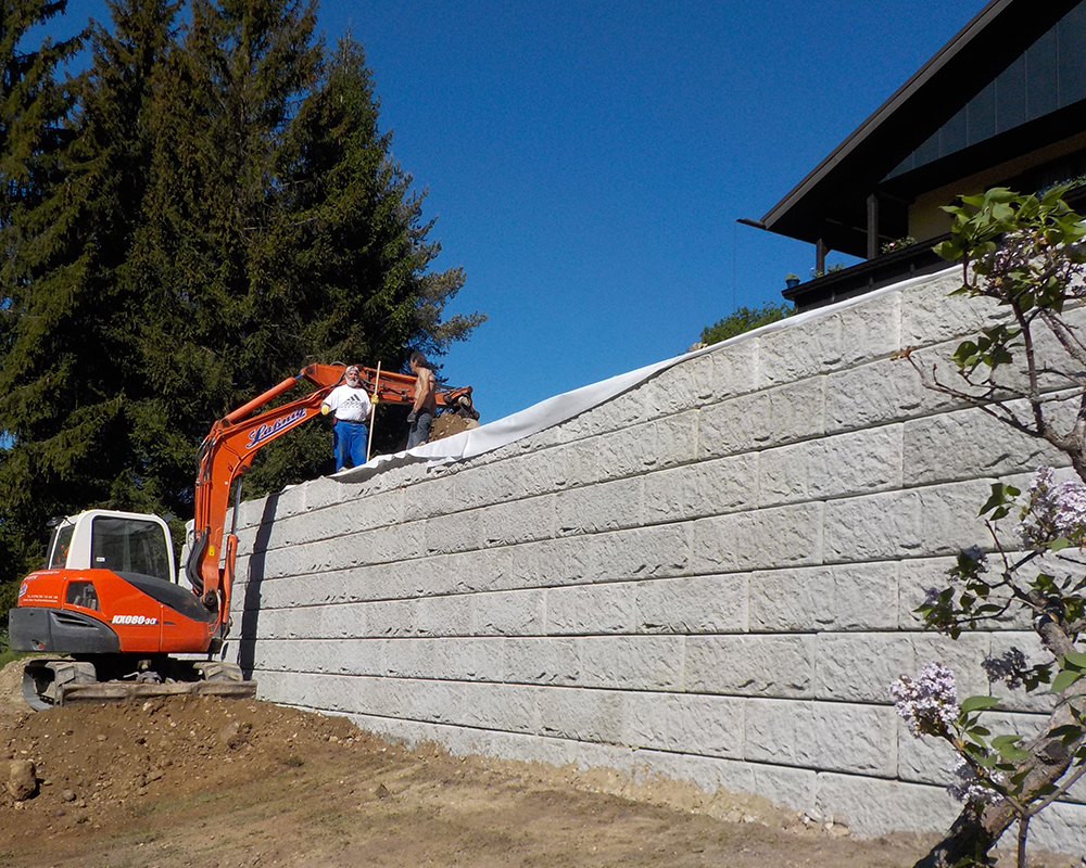 Die Stützwände können mit Hilfe einfacher Baugeräte leicht versetzt werden. Es sind weder Mörtel noch Anker notwendig.