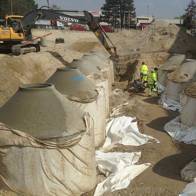 Für die Straßenmeisterei Wels wurde auf der B138 zur Versickerung des Niederschlagwassers eine…