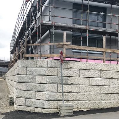Dank der modularen Bauweise konnte eine Stützmauer errichtet werden, die die bestehende…