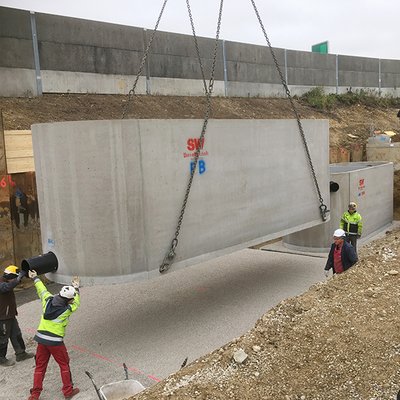 Für den Parkplatz Gloggnitz an der S6 wurde eine Gewässerschutzanlage in Fertigteilbauweise der Type…