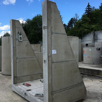 Das SW-Stützwandsystem wurde für die Einhausung eines Trinkwasserspeichers gewählt.
