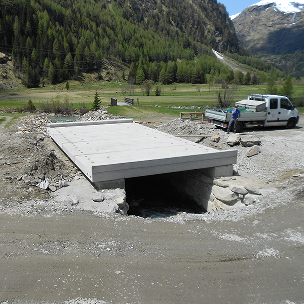 Die Daberbachbrücke am Fuße des Felbertauern befindet sich in der Gemeinde Matrei in Osttirol. Die Brücke mit Tragwerksabmessungen von 9,0 m x 3,5 m, bestehend aus 4 Brückenplatten inklusive Randbalken, wurde neu errichtet.