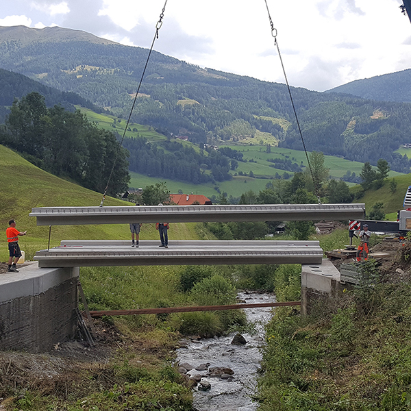 Die Brücke, die Hofzufahrt zu einem landwirtschaftlichen Betrieb, befindet sich in der Gemeinde Rennweg. Das desolate Stahl-Holztragwerk wurde durch eine Betonfertigteilbrücke ersetzt, die aus fünf T-Fertigteilelementen inklusive Randbalken besteht. Die Fertigteile konnten direkt auf die bestehenden Widerlager montiert werden. Die Tragwerksabmessungen betragen 12,2 m x 5,2 m. Die Brücke ist mit LKW bis 44 to Gesamtgewicht befahrbar.