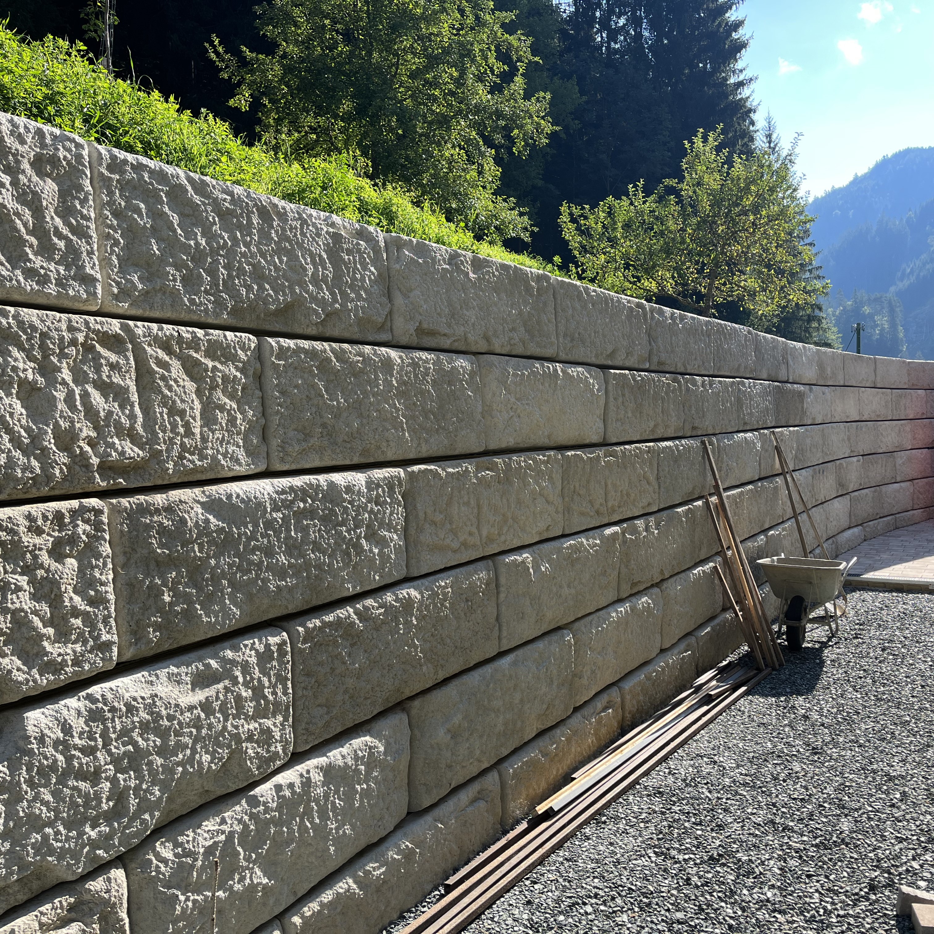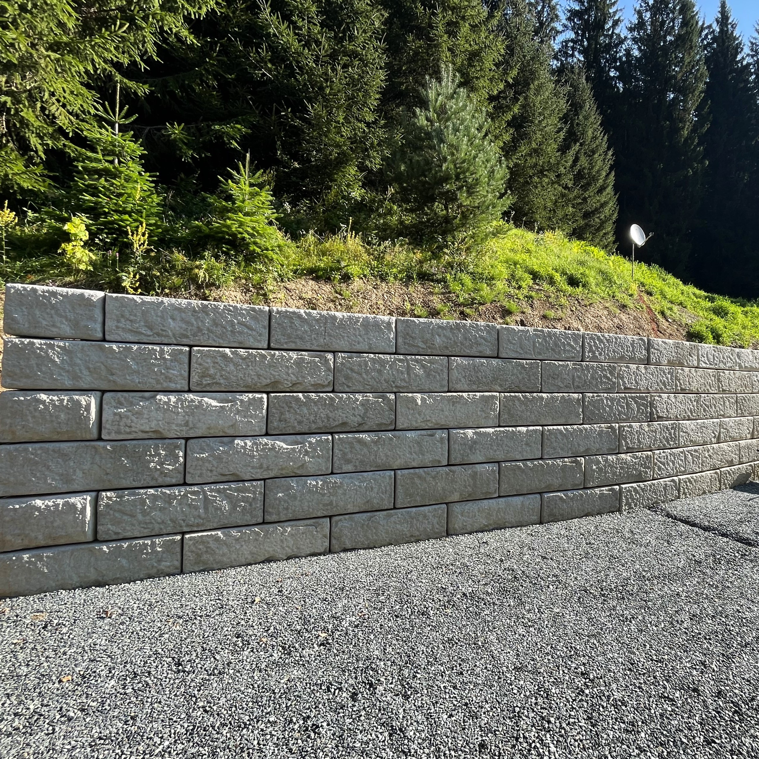 Dank des SW-Stützwandsystems wurde eine steile Böschung hinter dem Haus stabilisiert und die nutzbare Fläche konnte gleichzeitig erheblich vergrößert werden.
