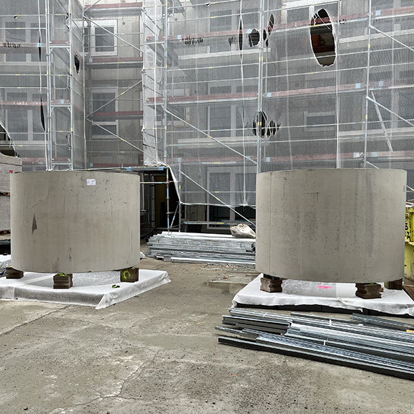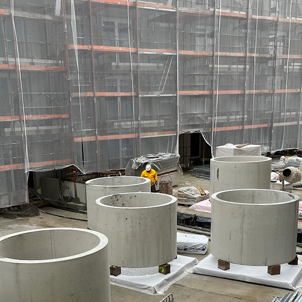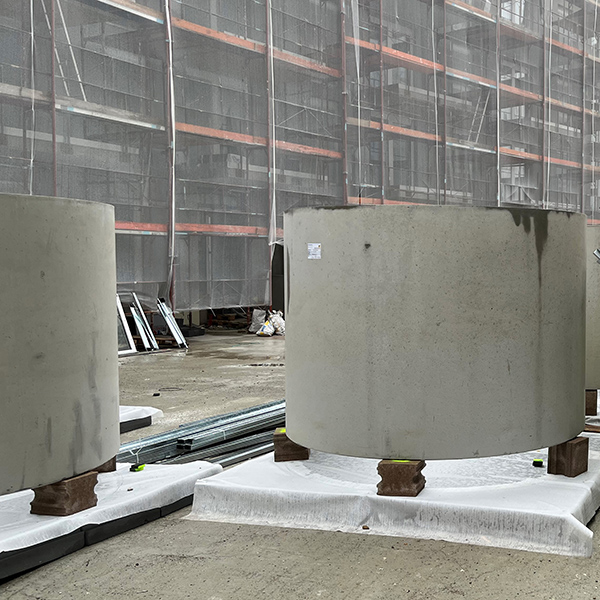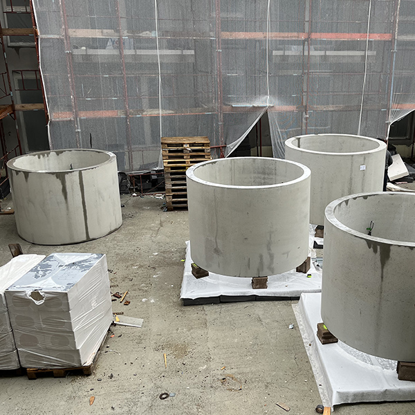 Für eine Wohnhausanlage in Wien, Effenbergplatz wurden 15 Stück Betonschachthülsen DN 200 cm mit Wandstärke 12 und 15 cm sowie einer Höhe von 160 cm geliefert. Die Schachtringe wurden zusätzlich bewehrt und mit einer Betongüte von mind. C45/55 B7 hergestellt. Das Produkt wird jeweils als Pflanzentrog verwendet. Je Pflanze muss ein definiertes Volumen an Erde im Trog vorhanden sein.