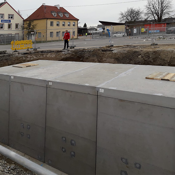 Am Bahnhof in Braunau am Inn wurde ein modularer Rechteckbehälter mit einer Länge von 10 m und einer Breite von 4 m für die Entwässerung errichtet.