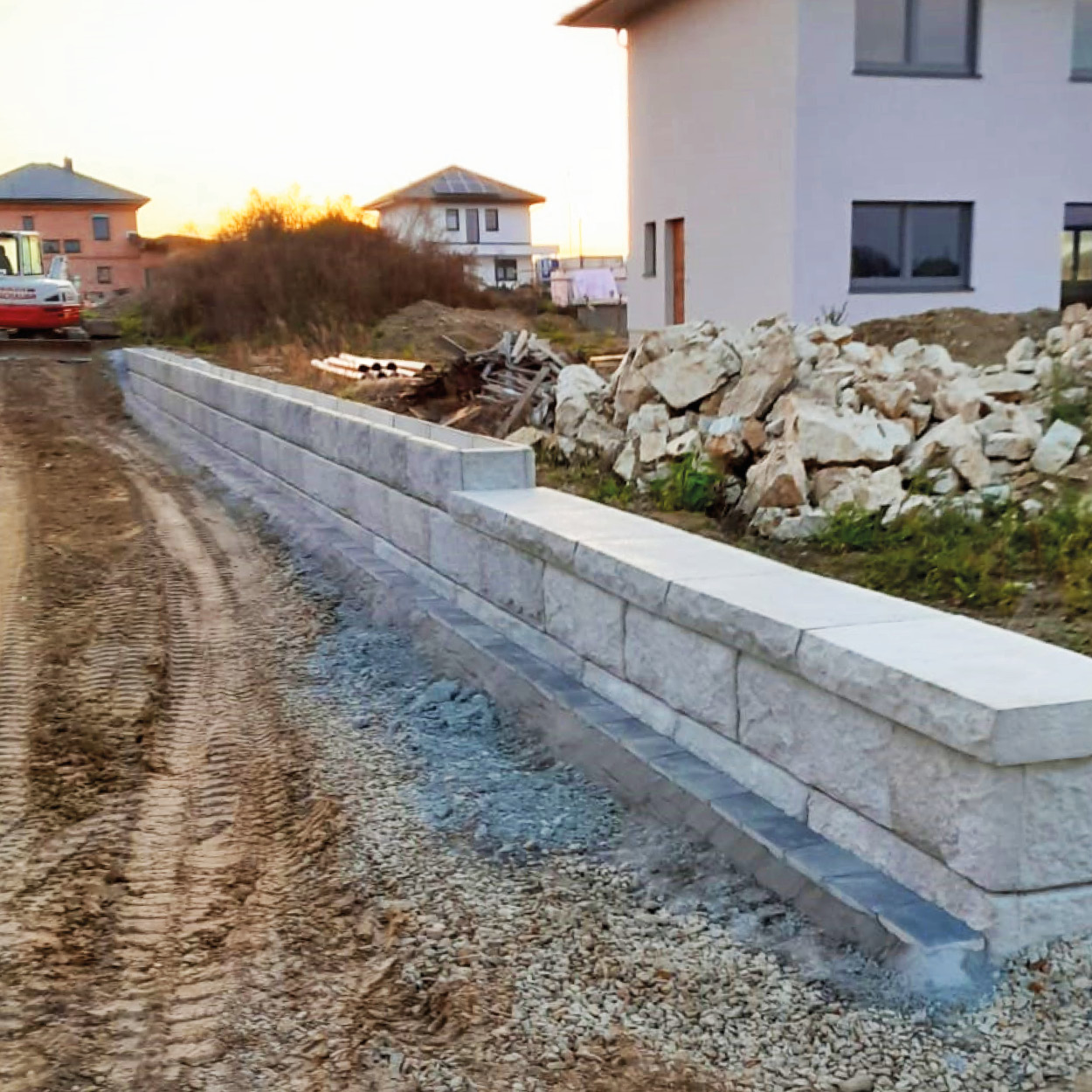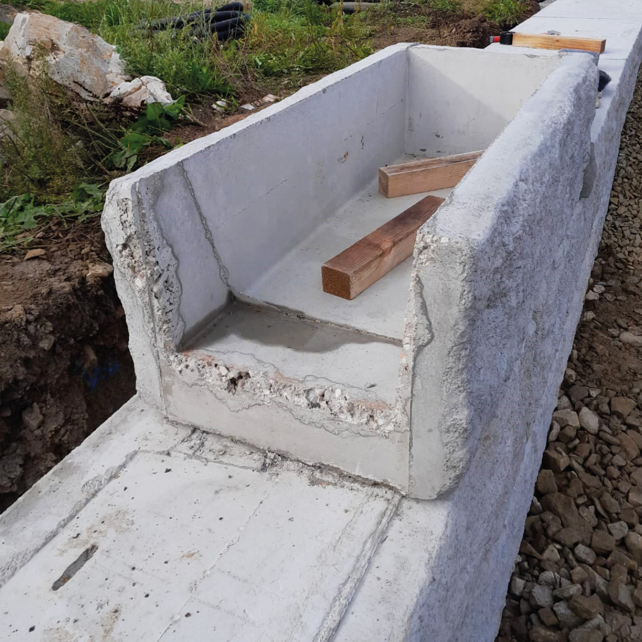 Bei dem Projekt in Großgerharts wurde eine SW-Stützwand mit Abschluss-Abdeckplatten sowie U-Trögen errichtet.