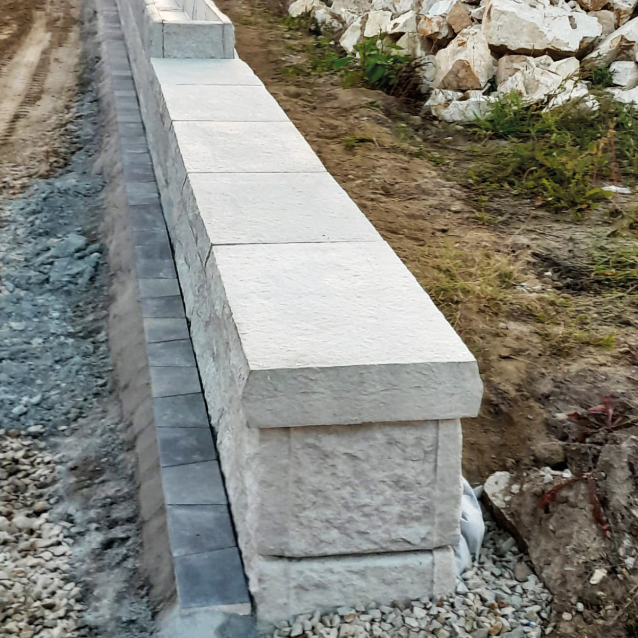 Stützmauer mit Abdeckplatten und U-Trögen, Großgerharts