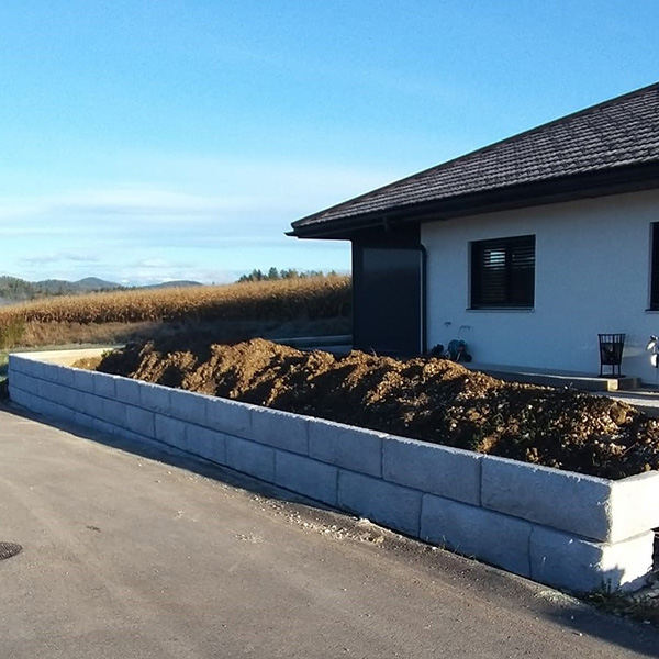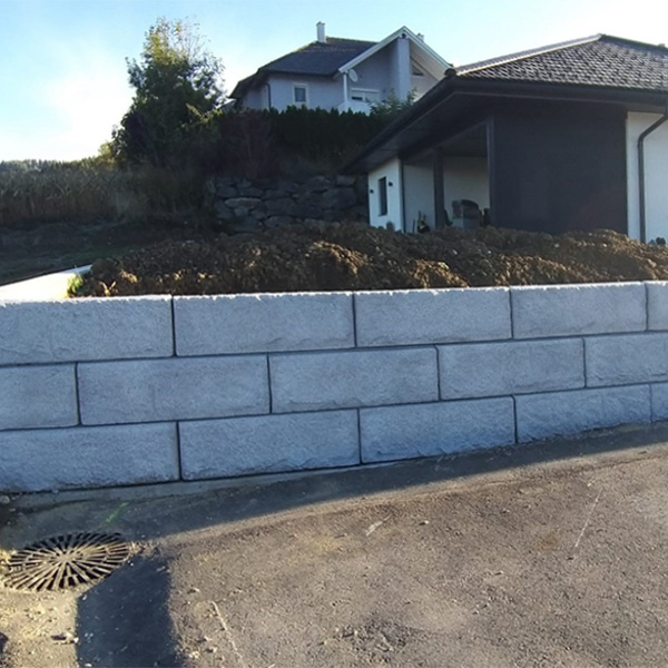 Das SW-Stützwandsystem wurde hier als Gartenmauer und als Abgrenzung zur Straße errichtet. Zusätzlich wurden die Oberfläche in Steineoptik mittels einer Nanoversiegelung beschichtet.
