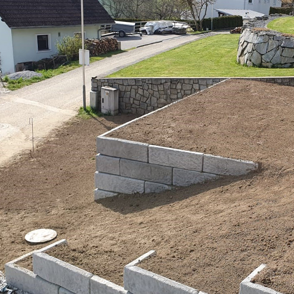 Gartengestaltung mit Stützmauer, Oepping
