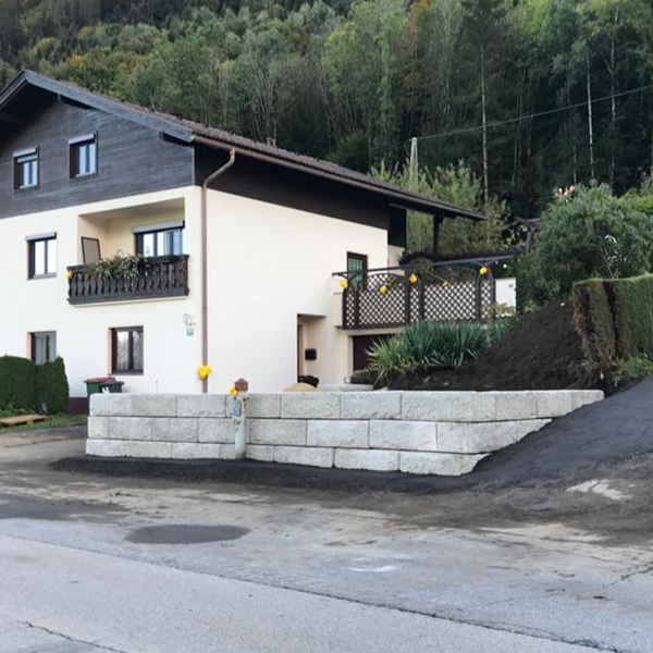 Der alte Zufahrtsbereich wurde entfernt und die leichte Hangneigung eingeebnet um für die vorgesehene Poolfläche mehr Platz zu gewinnen. Auch Stufenplatten für den direkten Zugang wurden verwendet.