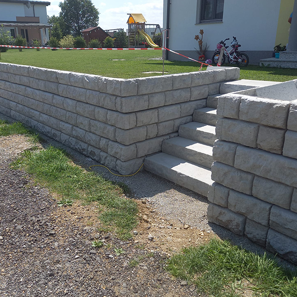 Das Projekt in der Gemeinde Unserfrau-Alweitra sieht die Errichtung eines SW-Stützwandsystems mit Stiegenaufgang und Abschlusssteinen vor.