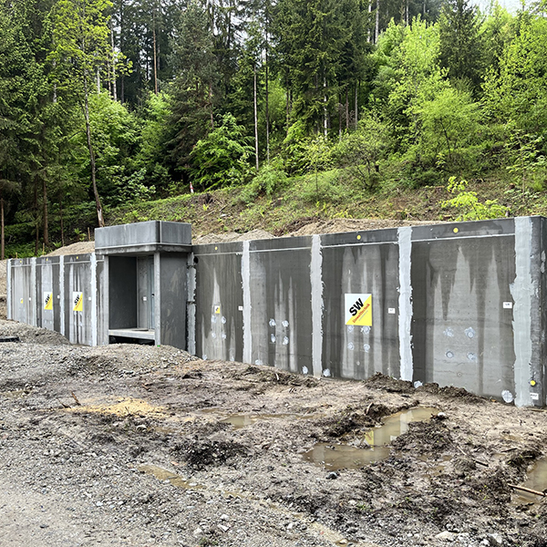 Im Zuge der Errichtung der Wasserversorgungsanlage in der Gemeinde Thaur, wurde auch der Neubau des Trinkwasserspeichers Gruabach realisiert. Hierbei handelt es sich um einen Trinkwasserspeicher bestehend aus je zwei Wasserkammern mit jeweils 80 m³ sowie einer Trocken- bzw. Schieberkammer inklusive Zugangsportal.